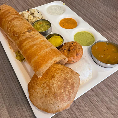 1.Sambar(3oz) 2.Rasam(3oz) 3.Vatral Kuzhampu ORMoore Kuzhampu(2oz) 4.Poriayal (3oz) 5.Kootu(3oz ) 6.Paratal(3oz) 7.Payasam (3oz) ORGulab Jamun1pic 8.Yogourt(2oz) 9.White Rice(400gPoni Rice) 10.Chapathi OR Small Poori(1pic) 11.Medu Vada(Small)&Papad& Pickle